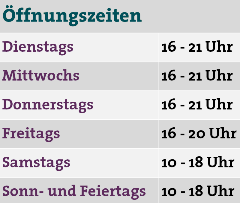 Hier und bei "Google" stehen immer die aktuellen Öffnungszeiten.